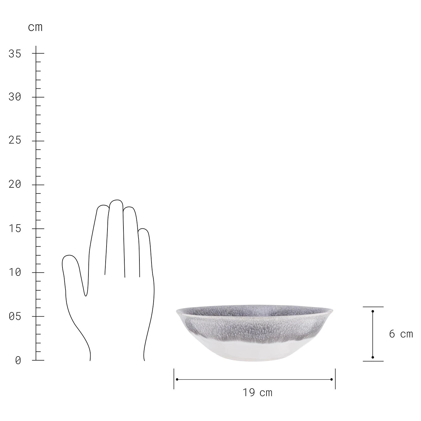 - Autres dimensions : Bol : Ø 19 cm / Hauteur : 6 cm / Contenance : 550 ml