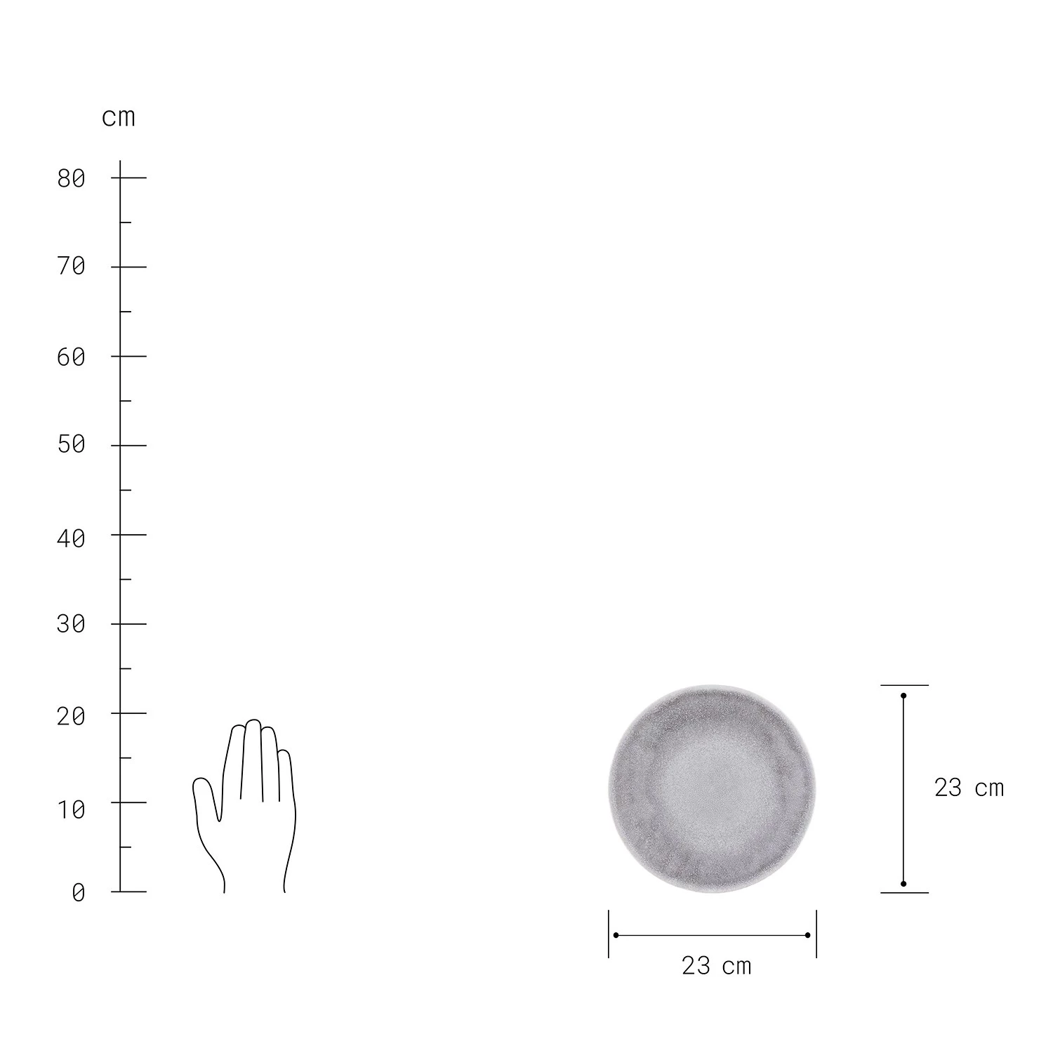 - Assiette à dessert : Ø 23 cm / Hauteur : 3 cm